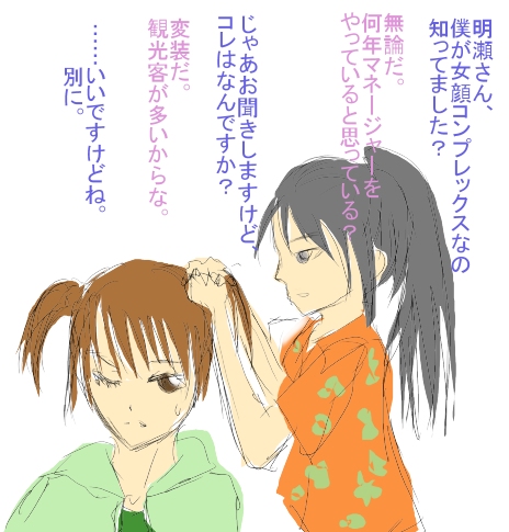 明瀬さんによって女装(ツインテール)させられるハル。