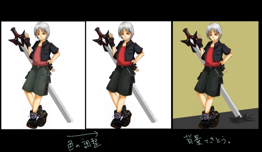 消してた剣のレイヤをつけて、全体の色を調節。