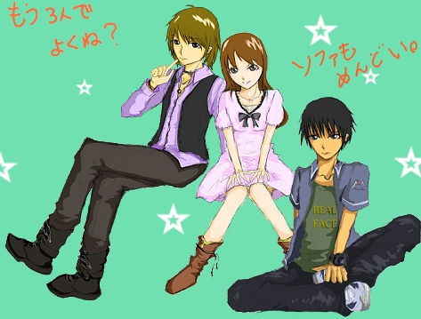 まじめに塗ってもラフとそんなに変わんない(いや、拡大したら歴全なんですが)。がんばったのに、画面に3人も入れるとちっちゃくなるなあ……(遠い目