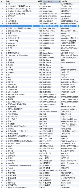 声が好きなアーティストの適当ピックアップ、「今度カラオケで歌って!」って頼まれてる曲、そろそろ季節かなあという曲、ぱっと目に付いた曲、いろいろ混ざってます。