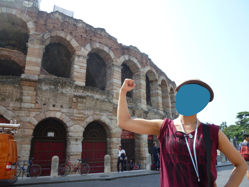 ↓ ベローナのアリーナでグラディエーターの真似をするわたし